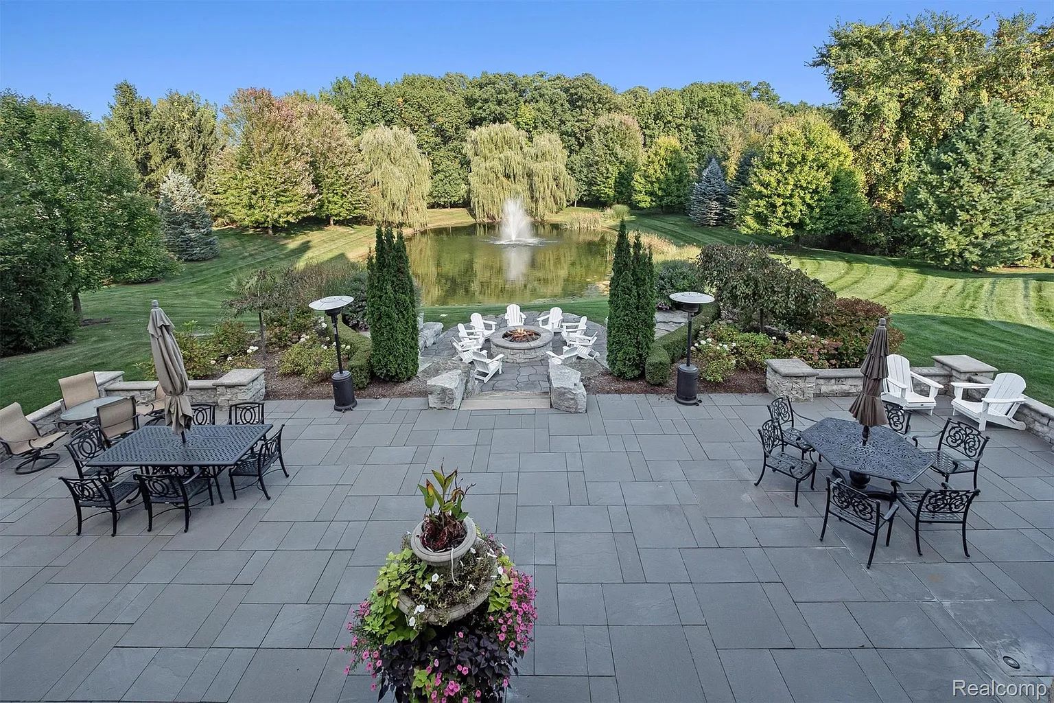 Golf Simulator, Horseshoe Bar, Greenhouse & Spa – The walkout lower level delivers a horseshoe-shaped bar, golf simulator, billiards, fitness room, indoor spa, wine room with tasting area, and a greenhouse with sauna opening directly to the 60-foot swimming pool.